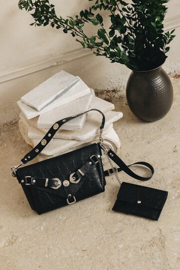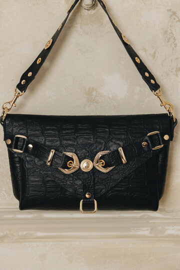 INDIVIDUAL ART LEATHER “MESSY”ΔΕΡΜΑΤΙΝΗ ΜΑΥΡΗ ΤΣΑΝΤΑ
