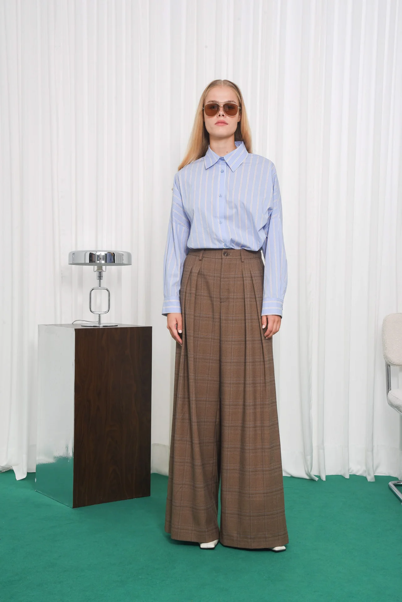 - Χρώμα καρό σε ζεστούς καφέ τόνους με λεπτές μπλέ γραμμές