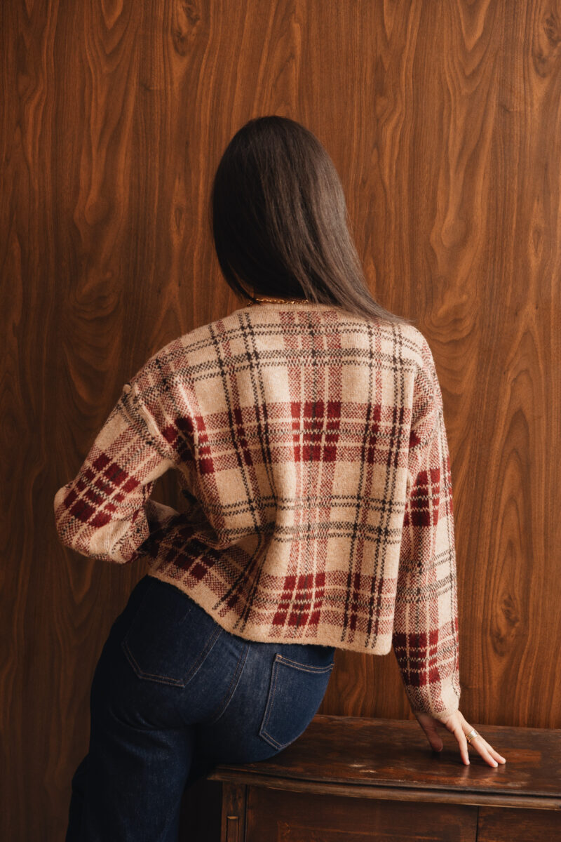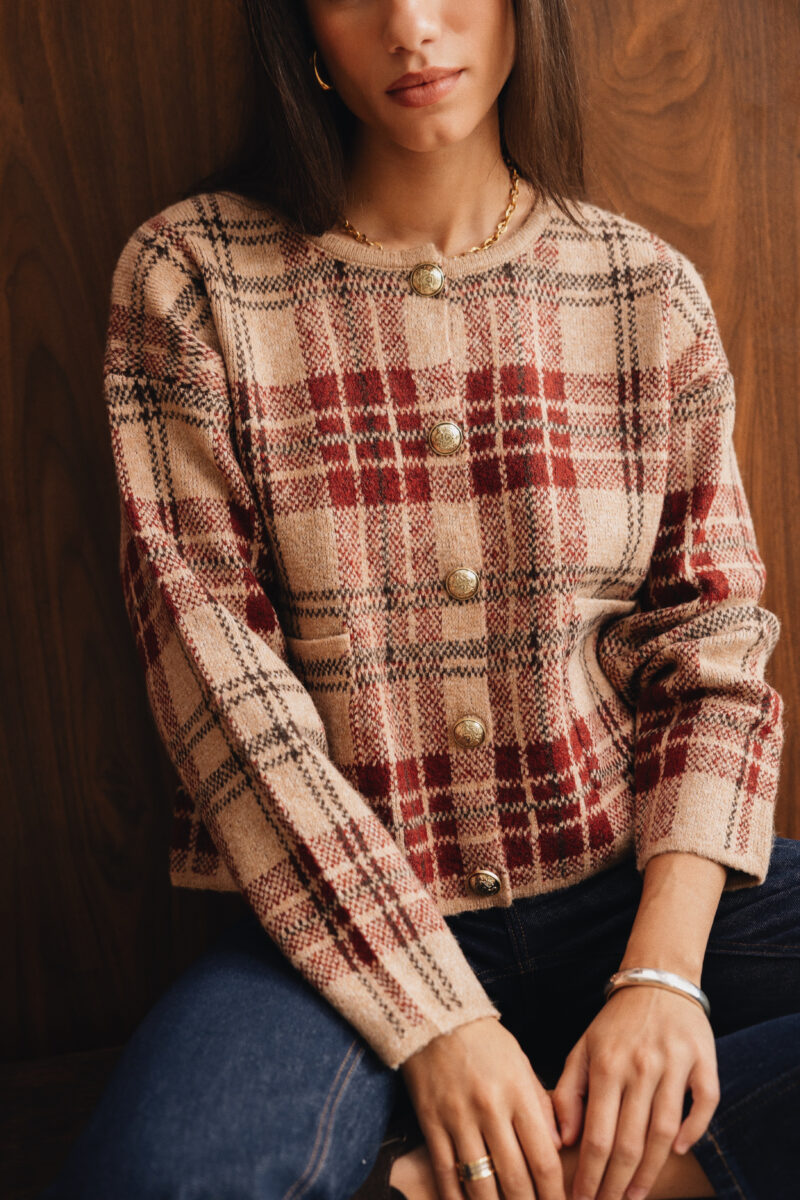 Andiekat Exclusive καρό πλεκτή ζακέτα με λαιμόκοψη