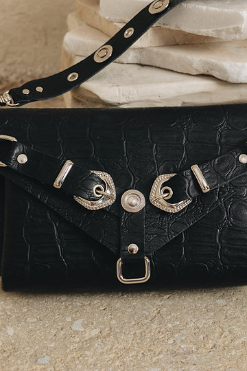 Individual Art Leather ”Messy” Δερμάτινη Μαύρη Τσάντα