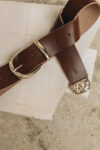 - Χειροποίητη δερμάτινη ζώνη με ασημί μεταλλική αγκράφα