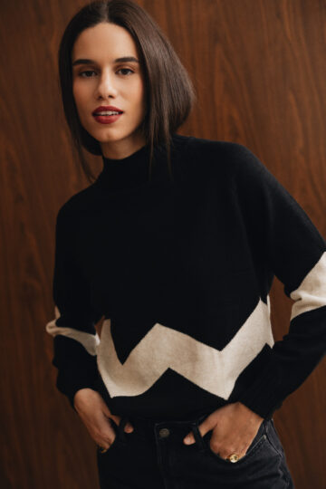 - Σχέδιο με διχρωμία στα μανίκια και στο τελείωμα