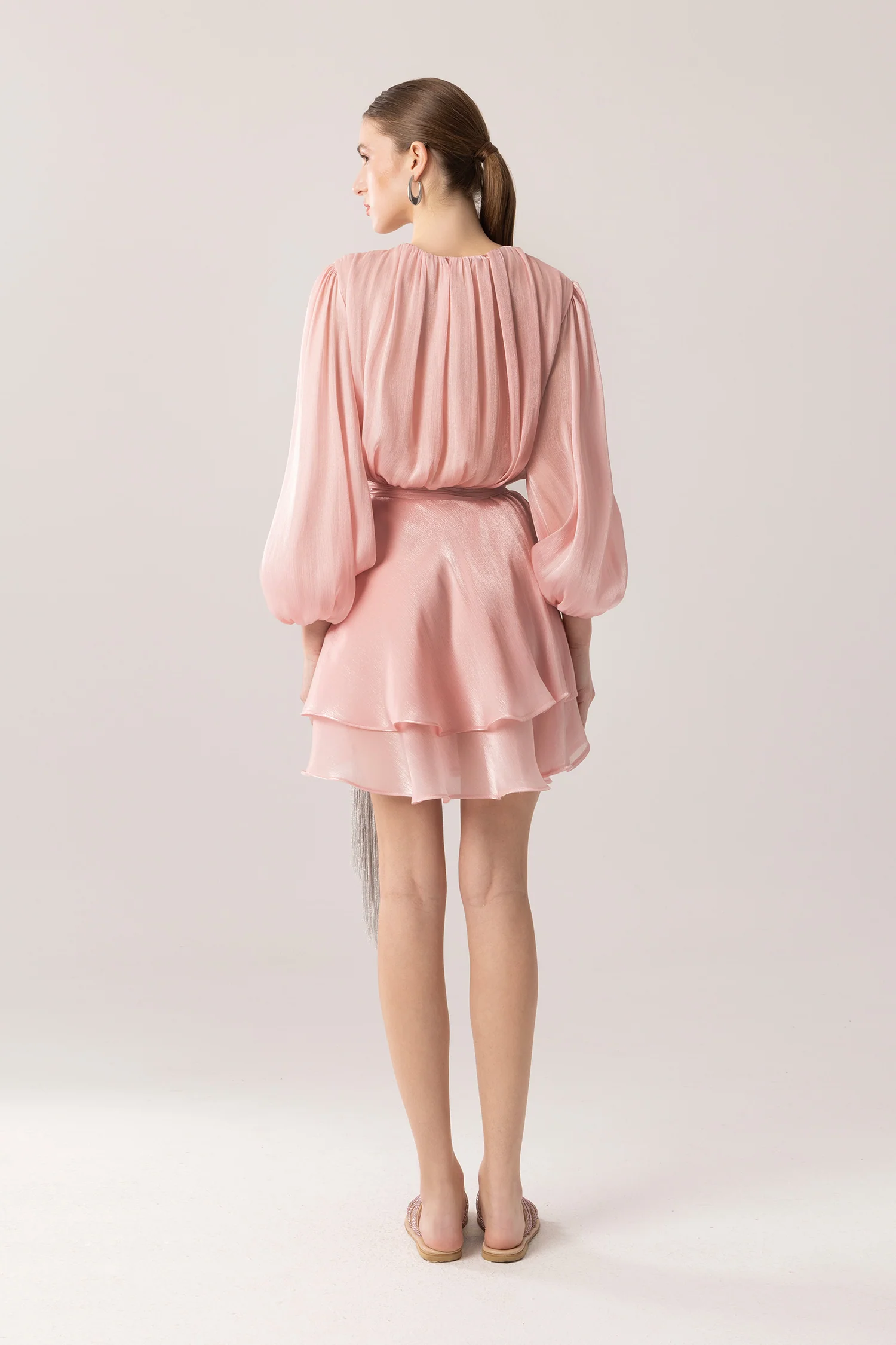 - Διπλή στρώση φούστας με απαλό βολάν στο τελείωμα